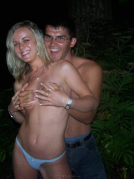 Допив бутылку пива, выпившая девушка решила остановиться в ночном лесу и немного пошалить. Задрав милое платье, длинноногая молодуха продемонстрировала что на ней нет нижнего белья и позволила спутнику взглянуть на ее сладкую письку и маленькие дойки. На следующее утро дама пришла на то же место и начала лежать голышом на подстилке.
