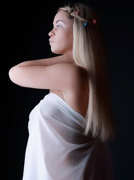 Стройная принцесса отправилась гулять по лесу накинув лишь белую ткань на голову. Приблизившись к озеру во время прогулки, обнаженная телочка заметила наклоненное дерево и залезла на него, после чего начала возбуждающе позировать. Лариса с удовольствием показывает свои упругие сисечки, а так же не забывает периодически светить неприкрытыми бедрами.