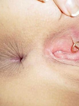 Знойная милфа с цветной татуировкой в виде бабочки на животе решила показать металлической колечко в своем клиторе и для этого разделась догола и переместилась на диван. Устроившись поудобнее 31 летняя брюнетка раздвинула ноги в разные стороны и стала светить пирсингом на своей гладко выбритой писечке, возбуждаясь от этого.