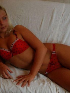 Очаровательная стриптизерша тридцати двух лет после работы приходит домой и, чтобы расслабиться, начинает надевать на себя разные комплекты сексуального нижнего белья и в таком виде позировать на удобном диване стоящем возле стены в зале. У блондинистой сучки огромная коллекция эротичных нарядов разных цветов и типажей.