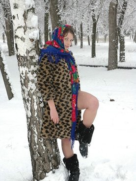 Пьяная брюнетка стала напротив стены и сняла с себя меховую шубу показав что на нее надето черное нижнее белье. Выпившая Аня с удовольствием позирует в полуголом виде, а через время, не смотря на свои тридцать с лишним лет, решается оголить торс и открывает вид на свои аппетитные буфера, оставаясь стоять лишь в кружевных труселях.