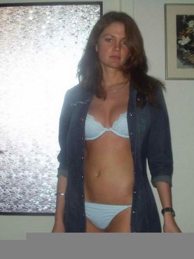 Привлекательная представительница прекрасного пола после душа пошла в спальню и надела на сое тело только полосатые трусики, в которых стала лежать на полу, а потом встала около двери и начала позировать, немного стягивая с себя труселя. Баловница с мокрыми волосами не стыдиться поворачиваться как спиной, так и торсом увенчанным симпатичными молочными железами.
