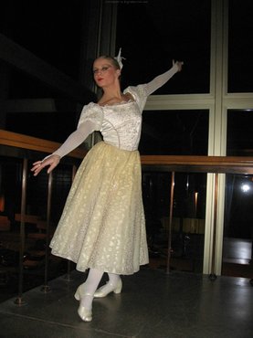 Придя в зал для тренировок, светловолосая девушка с грациозным телом надела на себя белую пачку и лифчик, и принялась делать разминку. Устав от однообразных упражнений сексуальная балерина решила отвлечься на интимные вещи и вскоре оголила свою небольшую грудь, а затем сняла пачку и присев на пол продемонстрировала изумительную пилотку