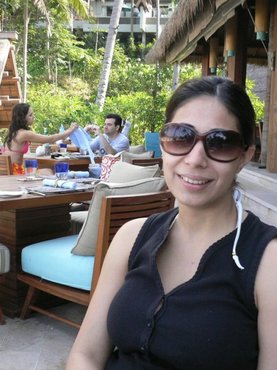 Во время отпуска, который кудрявая молодуха проводит у моря, она позволила себе ходить за пределами номера только в нижнем белье, а дома на кровати и вовсе посчитала правильным быть без трусиков и светить мандой. По вечерам симпатяга ходит по веранде в темных трусиках и лифчике, а когда идет на пляж купаться, то надевает розовый купальник на стройное тело.