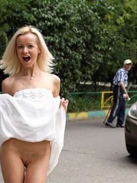 Сексуальная эксгибиционистка любит ходить обнаженной в публичных местах и получает удовольствие, когда прохожие пялятся на ее голые титьки или нежную писечку. Раздетая рыжуха не стесняется принимать привлекательные позы на разных улицах Питера и охотно раздвигает ножки садясь на бетон, открывая при этом вид на интимную стрижку.