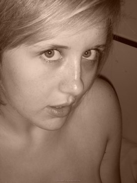 Молоденькая потаскушка зашла в тесную комнату и залезла на деревянный стол, где сняла с себя трусы и водолазку, оставшись только в черных чулках и перчатках. Сексапильная краля с упругим бюстом с огромным наслаждением фотографируется в черно-белых тонах выставляя на показ ухоженные прелести, включающие в себя сладкую вагину и две отличные дойки.