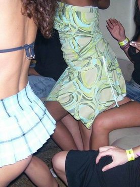 Пара красивых блондиночек в преимущество своей работы часто отжигают на вечеринках, где им приходится веселить присутствующих своими полуголыми телами. Профессиональные аниматорши не стесняются появляться на публике в одних только трусиках и часто разрисовывают их, чтобы упругие дойки привлекали к себе как можно больше внимания.