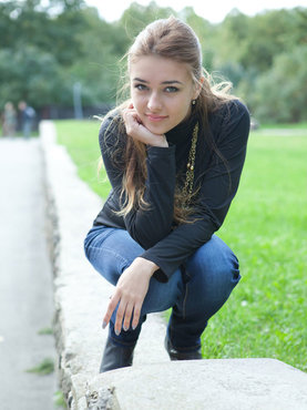 Каждый день после работы стройная мадемуазель приходит домой и, полностью раздевшись, отдыхает в своей спальне на двуспальной кровати, позволяя при этом своему супругу фотографировать ее в столь откровенном виде. Если у сучки хорошее настроение, то она даже страстно позирует, хвастаясь аппетитными молочными железами и интимной стрижкой.