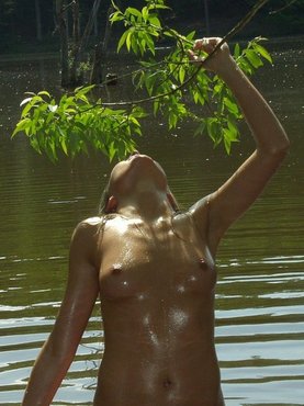 Приехав на пикник стройная принцесса ушла далеко от основной компании и нашла дикий водоем, в котором ей захотелось окунуться. Сняв с себя все лишнее, голая блондиночка зашла в воду и стала наслаждаться ее прохладой. Прелестная баловница купается в лесном озере и наслаждается тем, как ее твердые соски намокают.