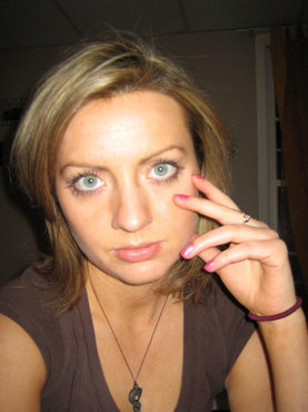 Неудовлетворенная марамойка с мокрой писечкой сняла с себя чулки и нижнее белье, оставшись только в развязанном галстуке и присев поудобнее расставила ножки, после чего взяла фиолетовый вибратор и начала им ласкать свою письку. От мастурбации Юля очень быстро кончила, а потом надела розово-черные чулки и став в коридоре засветила сладкую писю.