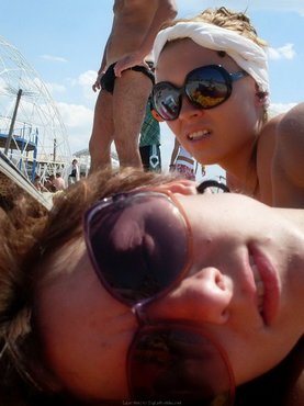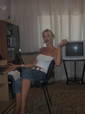 Стройная блонда не стесняется щеголять по дому в одних трусиках и часто показывает свои булочки поворачиваясь спиной. Иногда девушка отправляется на свежий воздух имея на себя только розовые плавки, а потом ложиться на шезлонг и загорает топлес под палящим солнцем, не стесняясь того, что посторонние могут увидеть ее голые дойки.