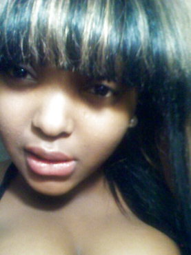 Темнокожая нимфа надела на голое тело белое одеяние и пошла к водоему, в который зашла не раздеваясь и немного искупалась. Когда одежда негритянки промокла насквозь, она вышла на берег и начала сексуально позировать, хвастаясь не только черными сиськами, увенчанными твердыми сосками, но и своей замечательной жопой.