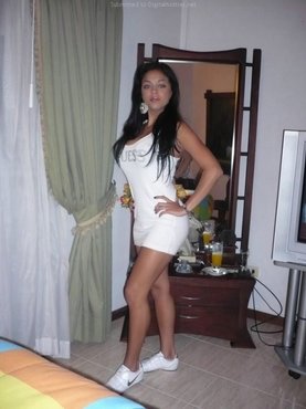 Озабоченная брюнетка надела на себя рваные чулки черного цвета и такого же цвета стринги и пеньюар. Будучи облаченной в сексуальный комплекс нижнего белья, марамойка начала развратно позировать у себя дома, а потом взяла свой любимый фаллоимитатор и начала его сосать, представляя будто это половой орган ее любимого мужчины.