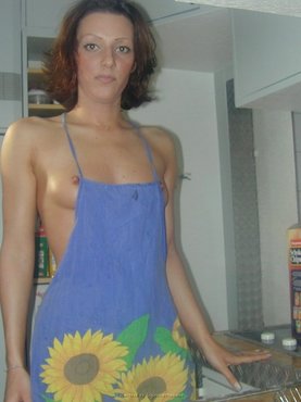 Зрелая женщина осталась дома одна и начала заниматься готовкой на кухне, предварительно надев розовый фартук на голое тело. После того как взрослая домохозяйка приготовила еду, она пошла в зал, где сперва села на диван и расставила ноги, показав сочную писечку вместе с титьками, а затем переместилась на пол и стоя раком открыла отличный вид на пердак.