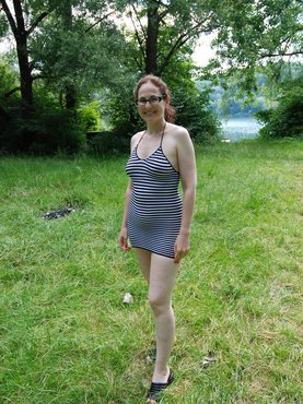 Разнузданная барышня носящая очки частенько позирует в одних трусиках, или абсолютно голой, у себя дома и получает удовольствие от того, что показывает голые части тела с разных сторон. Так же пошлая мамка готова засветить письку даже во время прогулки на улице. Лежа на подстилке под открытым небом, сучка с расставленными ногами охотно демонстрирует пилотку.