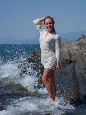 Абсолютно голая принцесса, в ярких туфлях на каблуке, с длинными волосами стала в студии пред камерой и присела на корточки, после чего начала сексуально позировать, показывая с разных сторон стройную фигуру. Роскошная блондинка не стыдится светить аккуратными сисечками, а так же охотно раздвигает ляжки и демонстрирует ухоженную киску.
