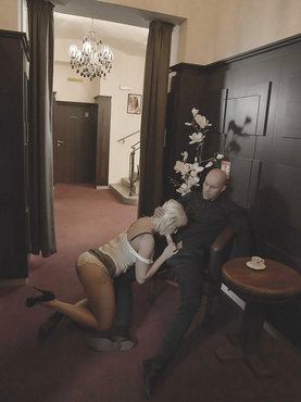 Улыбчивая соска у себя дома облачилась в черные чулки и синий пеньюар, а затем начала вызывающе позировать, возбуждая сожителя. Через время представительница женского пола сняла с себя трусики и засветила свою киску, а затем добралась до писюна избранника и сделала ему свой фирменный минет, от которого тот получил массу удовольствия.