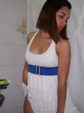 Чтобы порадовать своего жениха видом своего тела, стройная девушка надела на себя сетчатый бодистокинг серого цвета, а поверх него натянула трусики. В полуголом виде представительница прекрасной половины человечества начала красоваться собой, иногда прикрывая бюст руками, а потом решилась отодвинуть трусики от письки и поиграть с ней пальцами.