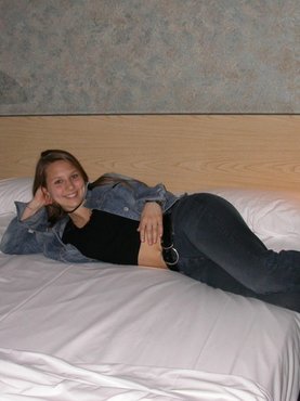 Раскрепощенная блонда захотела поиграть со своей киской и для этого сняла с себя оранжевую кофточку и джинсы, а потом еще и стянула белые трусы с голубой окантовкой. Оставшись лежать на кровати полностью голой, дамочка раздвинула ножки и принялась теребить пальцами клитор и сладкую киску, получая от этого колоссальное наслаждение.