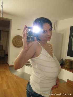 Встав спиной к стене, симпатичная дама с длинными ресницами распахнула леопардовую кофточку и вывалила из черного лифчика огромные буфера. Очаровательная фифа с накрашенными губами стоит в полный рост и демонстрирует во всей красе гигантские дойки, увенчанные большими сосками и ореолами большого диаметра.