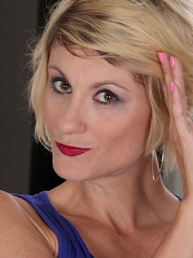 Редкий фотосет с по настоящему красивой женщиной старше 40 лет. Стройная зрелка с платиновыми волосами сначала красуется в коротких шортиках, после чего начинает раздеваться. Сначала женщина обнажает силиконовые титьки, а потом снимает трусики на диване.