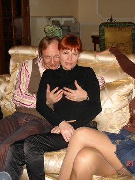 • Молодая блондинка шалит с рыжей зрелкой и ее супругом
